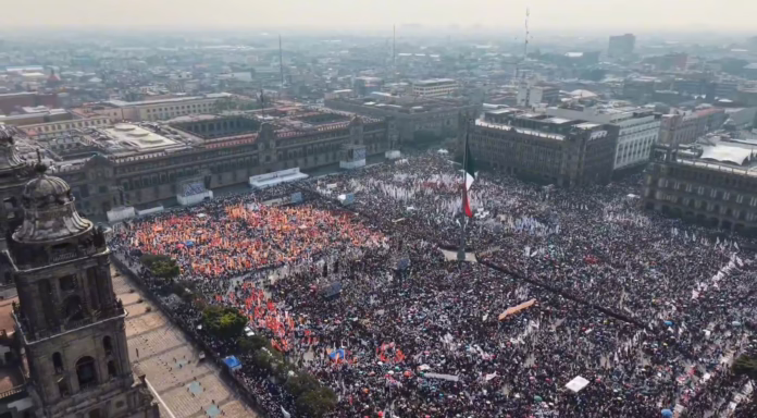 La movilización tiene previsto concluir en la Plaza de la Constitución, donde la presidenta Claudia Sheinbaum dirigirá un mensaje a las miles de personas congregadas desde primeras horas del día para conmemorar el avance de la Cuarta Transformación.