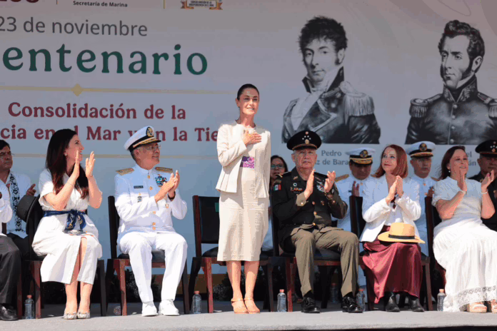 Sheinbaum destacó que las naciones observan a México “con esperanza y admiración”, porque la defensa de la patria se hace “con amor y no con odio”. Recordó que este día también marca el bicentenario de la consolidación de la independencia en el mar y reconoció la labor de la Armada y el Ejército, cuya disciplina y vocación de paz —afirmó— honran la memoria de figuras históricas como Pedro Sainz de Baranda.